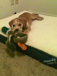 Here is the cone of shame-day 2. Things are continuing to improve. We left him alone in his crate for about 30 minutes today to run down the road to grab something to eat, & it was successful. He has trouble manuvering around in his crate with the cone on, but I think that is a blessing so he can't lick his wounds. Nick took another day off, and I have Sunday off so atleast someone will be home with him. I'll keep you updated!